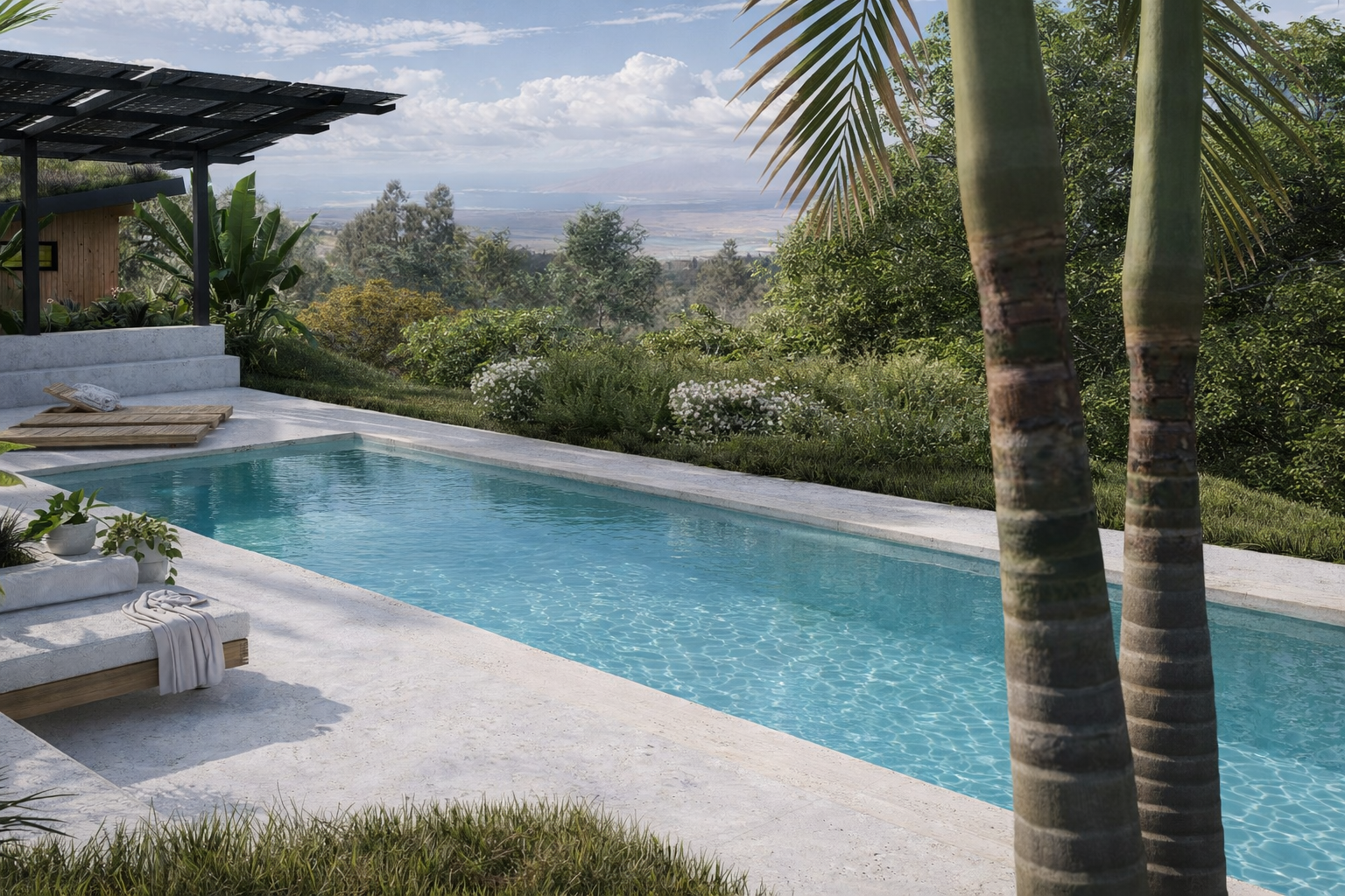 Living on their expansive property for many years, our clients knew they had room for a new ohana and pool and had only dreamed about where it would best fit into their property and correspond to the location of the main house. We took all this into consideration while capitalizing on the view, the landscape, and their desire for warmth at the property's high elevation on the dormant volcano.