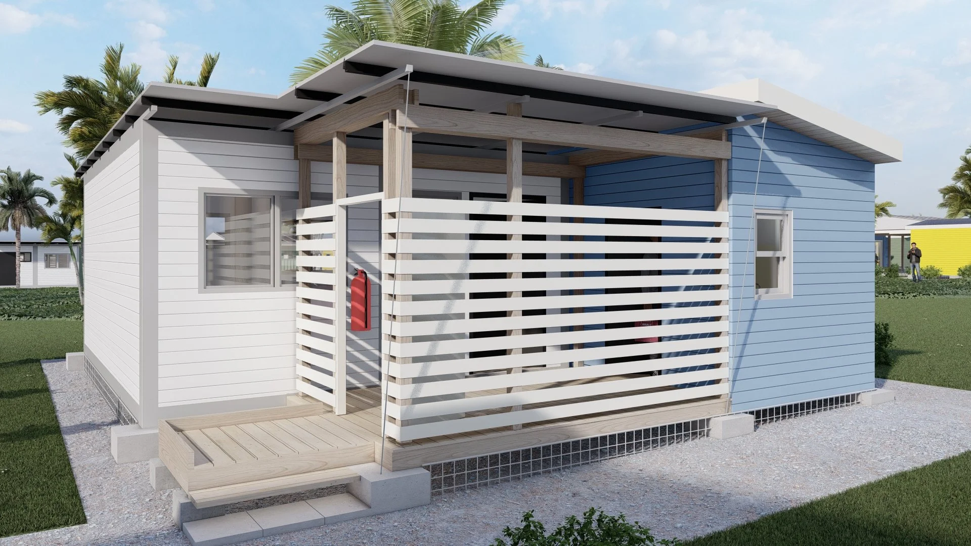 The off-grid community integrates Continest modular dwellings with prefabricated wet cores, along with self-sustaining energy and wastewater systems. Designed to accommodate large or multi-generational families and Kupuna, the village features clusters of 4-6 homes, each with a private bathroom, kitchen, and lanai, built around a shared community center. These centers provide communal laundry facilities, private meeting rooms, and spacious kitchens and dining areas—ideal for gathering and support.